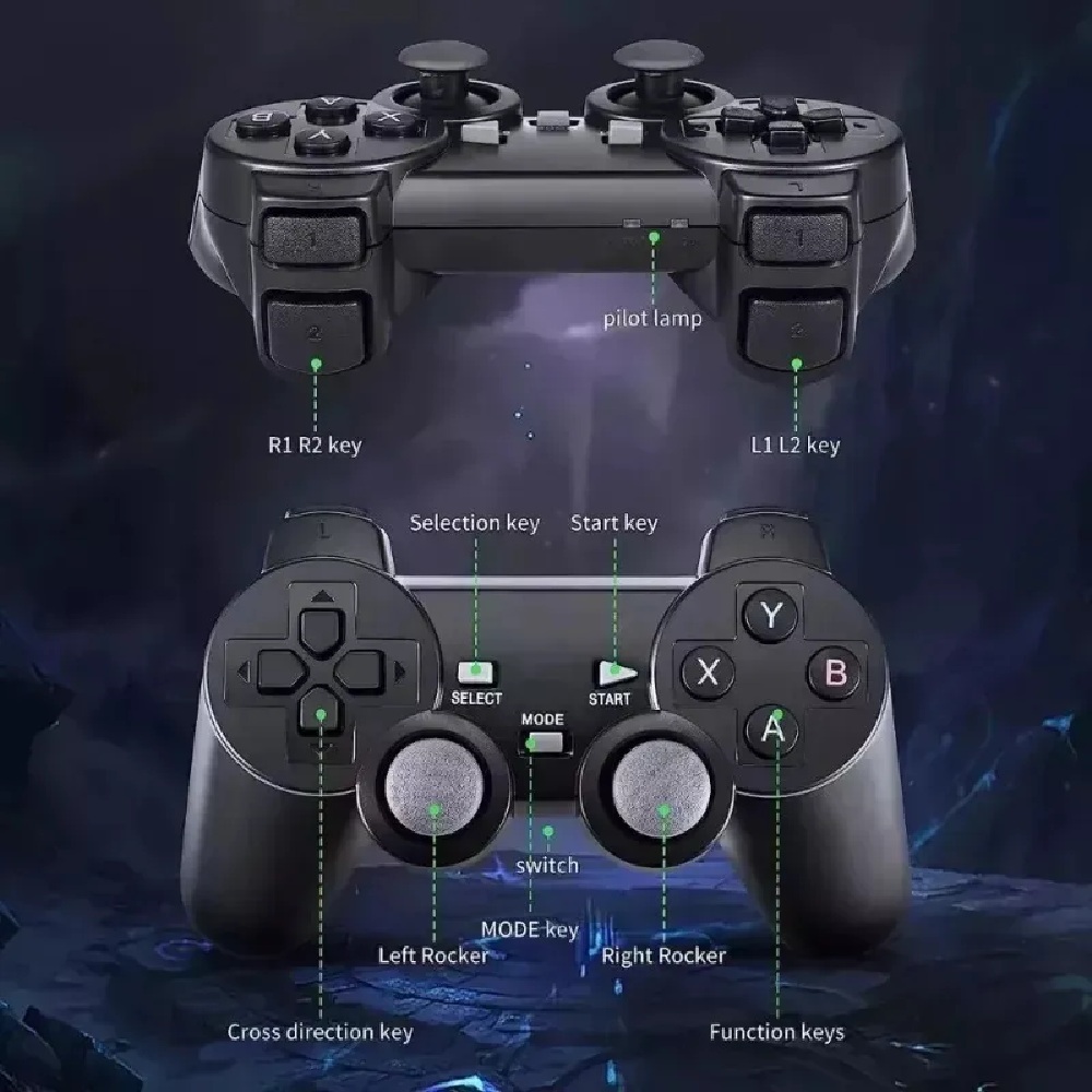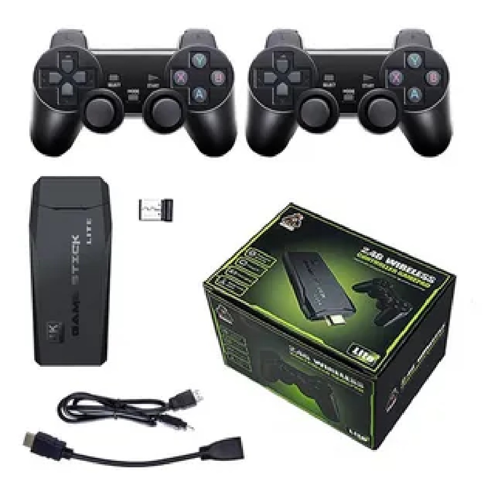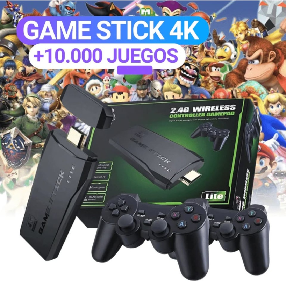 Memoria de 64 GBConsola especial para revivir muchos momentos y para compartir en familia, tiene miles de juegos de muchas consolas que han llegado con el paso del tiempo.Caracteristicas:Nombre: Game stick Lite + 2.4G controlador inalámbricoGamepad Linux + retro archic Open (sistema de código abierto)Sistema operativo: sistema de código abierto remoto LinuxIdioma: Español e inglésSimulador multilingüe inglésCaracterísticas principales:Soporta 9 simuladores: Mame, PS1, nes, Games SNES, GB, GBC, GBA, Genesis MD, Atari.Tiene gran variedad de juegos de todas estas consolas no tenemos el lsitado de estos pero tiene los mejores y los mas clasicos juegos.Incluye una tarjeta de memoria de 64 GB que contiene 10.500 juegos.Guardar y cargar el Estado del juego en cualquier momento en cualquier juego.Salida HDMI.Equipado con 2 controladores inalámbricos.Corren en dos montones de palillos de dientes.La consola es Mini.Paquete contiene:Consola Mini Game stick lite2 controladores inalámbricos1 cable de extensión HDMI1 receptor de señal USBCable1 cable de alimentación USBManual del usuario1 tarjeta TF de 64 GB